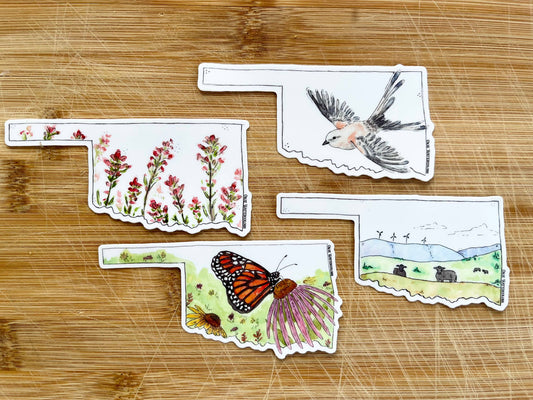 Oklahoma State Landscape Watercolor 4" Vinyl Sticker