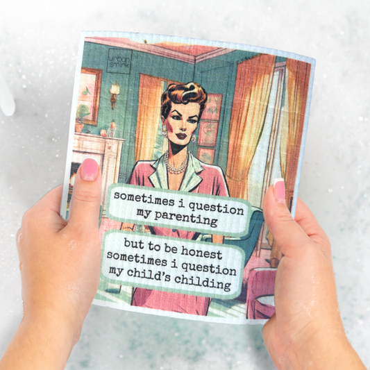 Question My Parenting - Funny Vintage Swedish Dishcloth