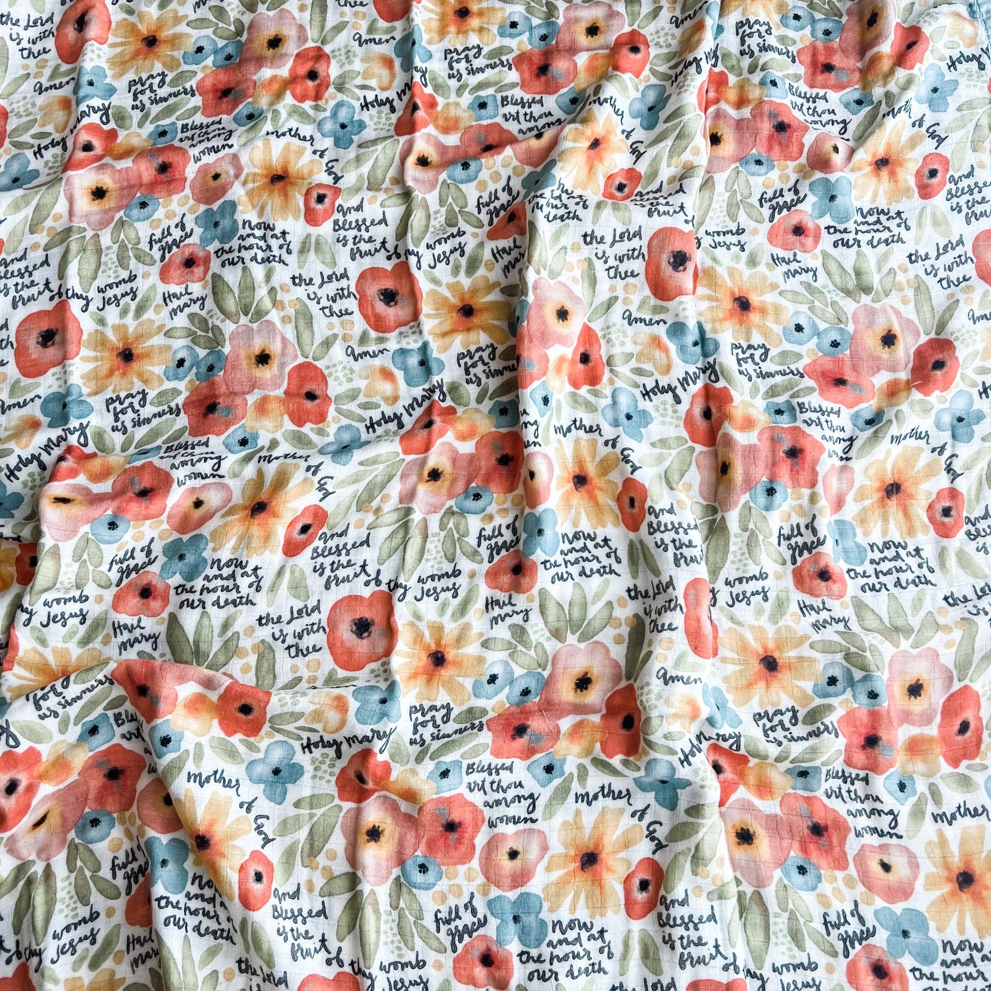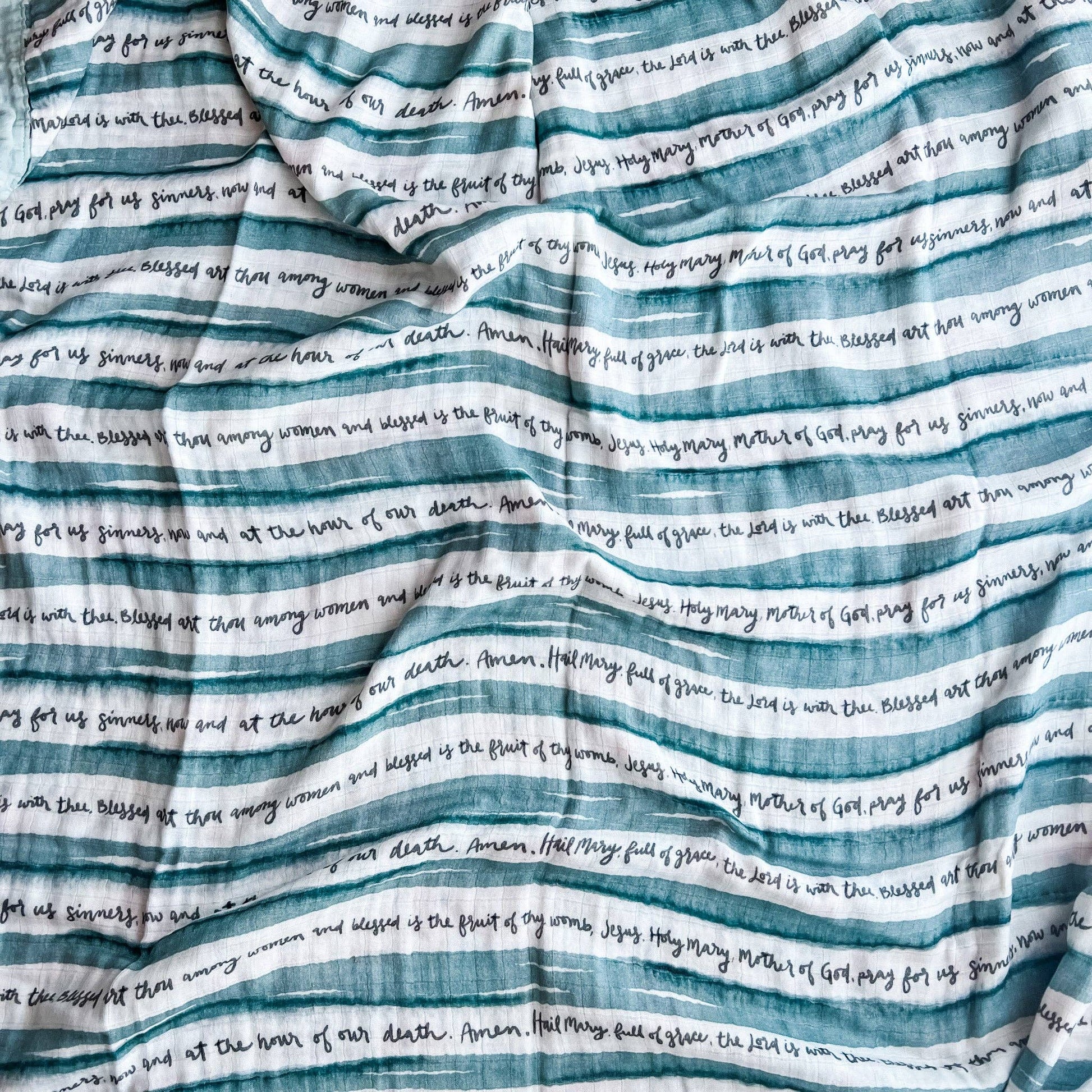 Catholic Luxury Double Sided Muslin Blanket - Watercolor Hail Mary