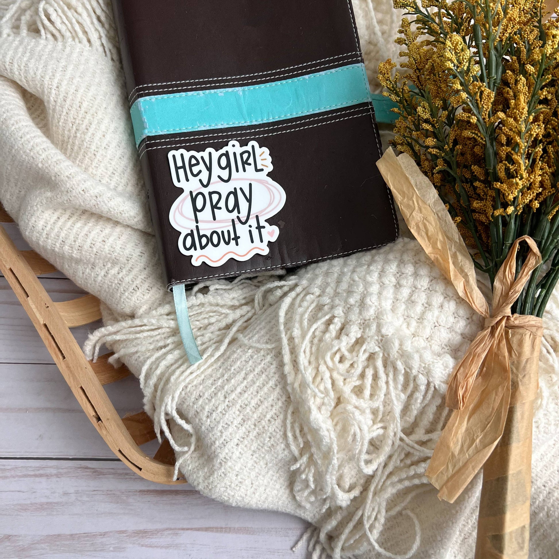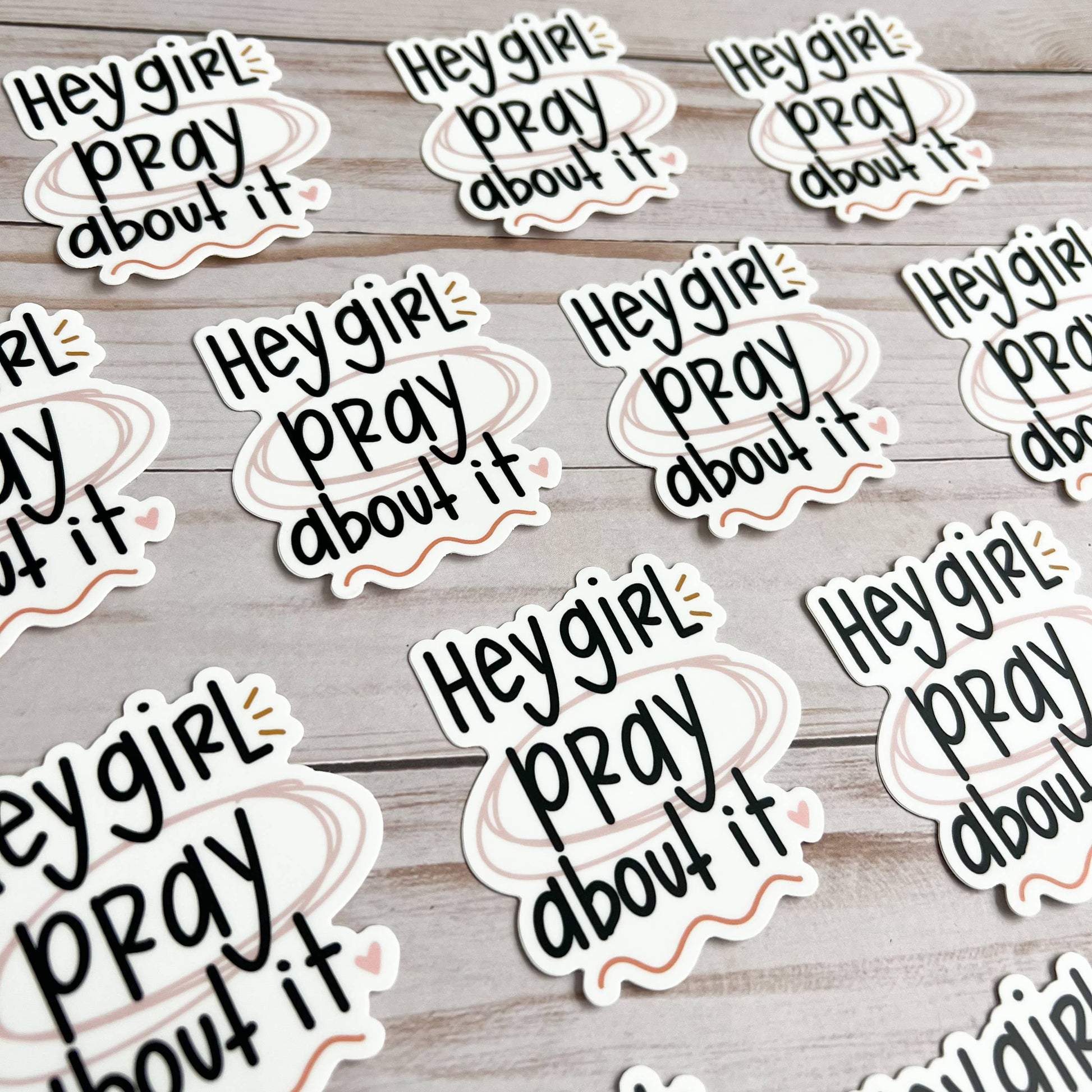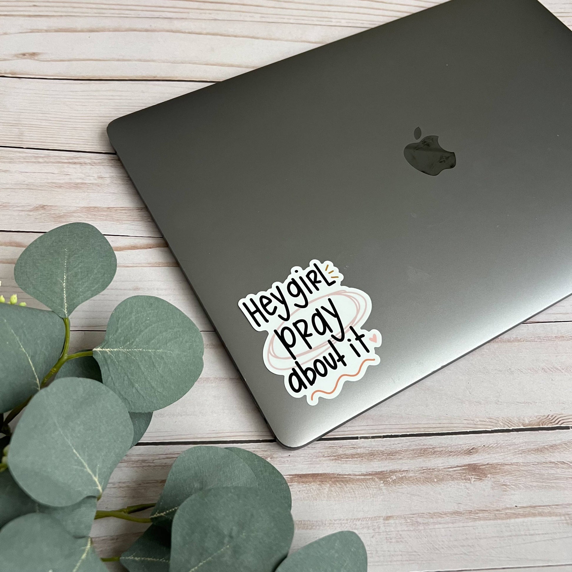 This Christian sticker is a good reminder: hey girl, pray about it.