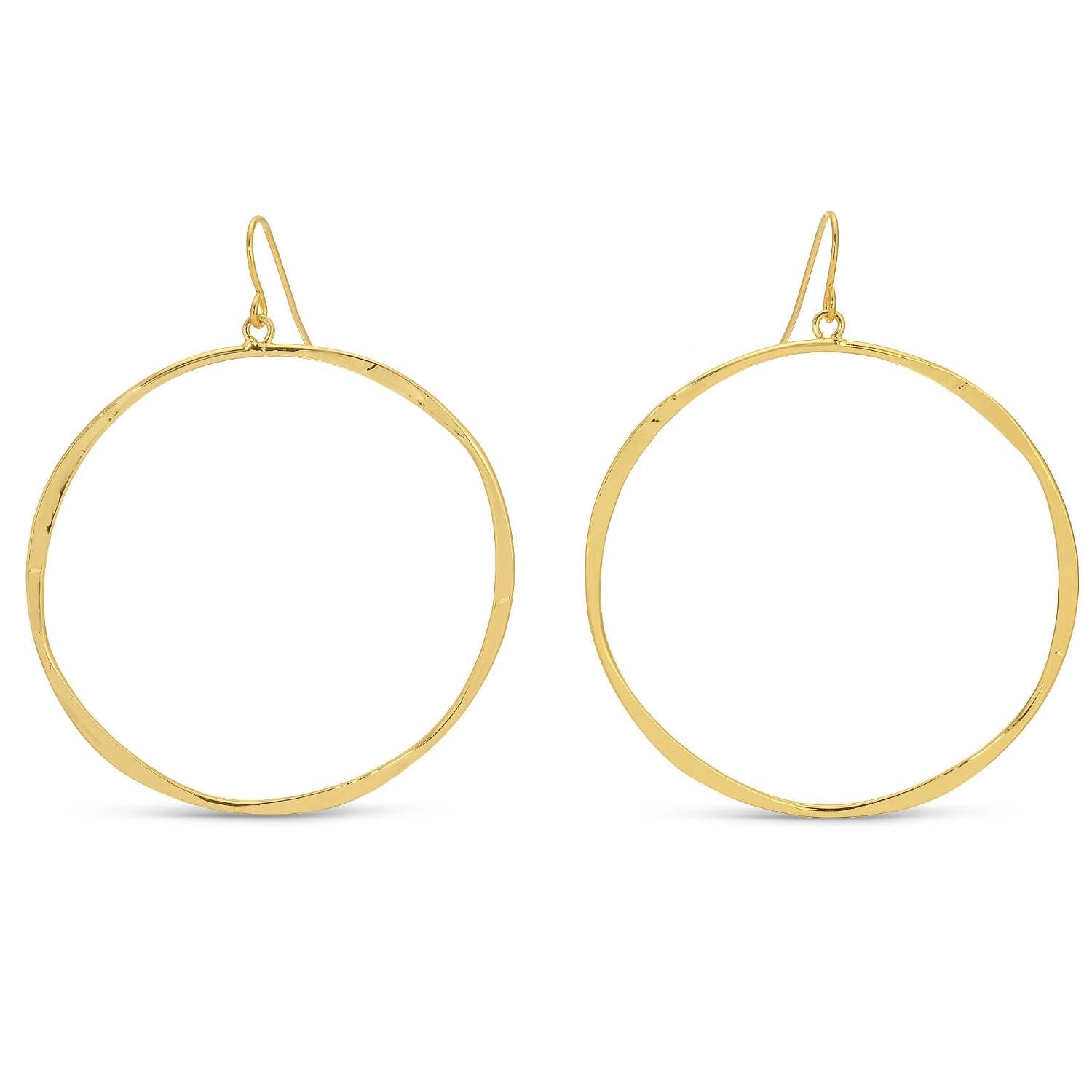 These earrings are big, lightly hammered, and feature an open circle design that hangs wonderfully from your ears.