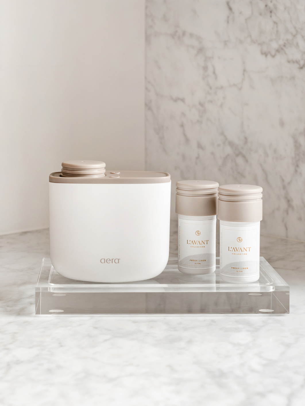 Our premium-quality Medium Lucite Tray is a luxurious addition to any room. Crafted with luxury acrylic and custom L'AVANT Collective etched logo, it fits two of our L'AVANT pieces and can be placed on a sink, vanity or side table, adding a sophisticated touch with its sink-side style.