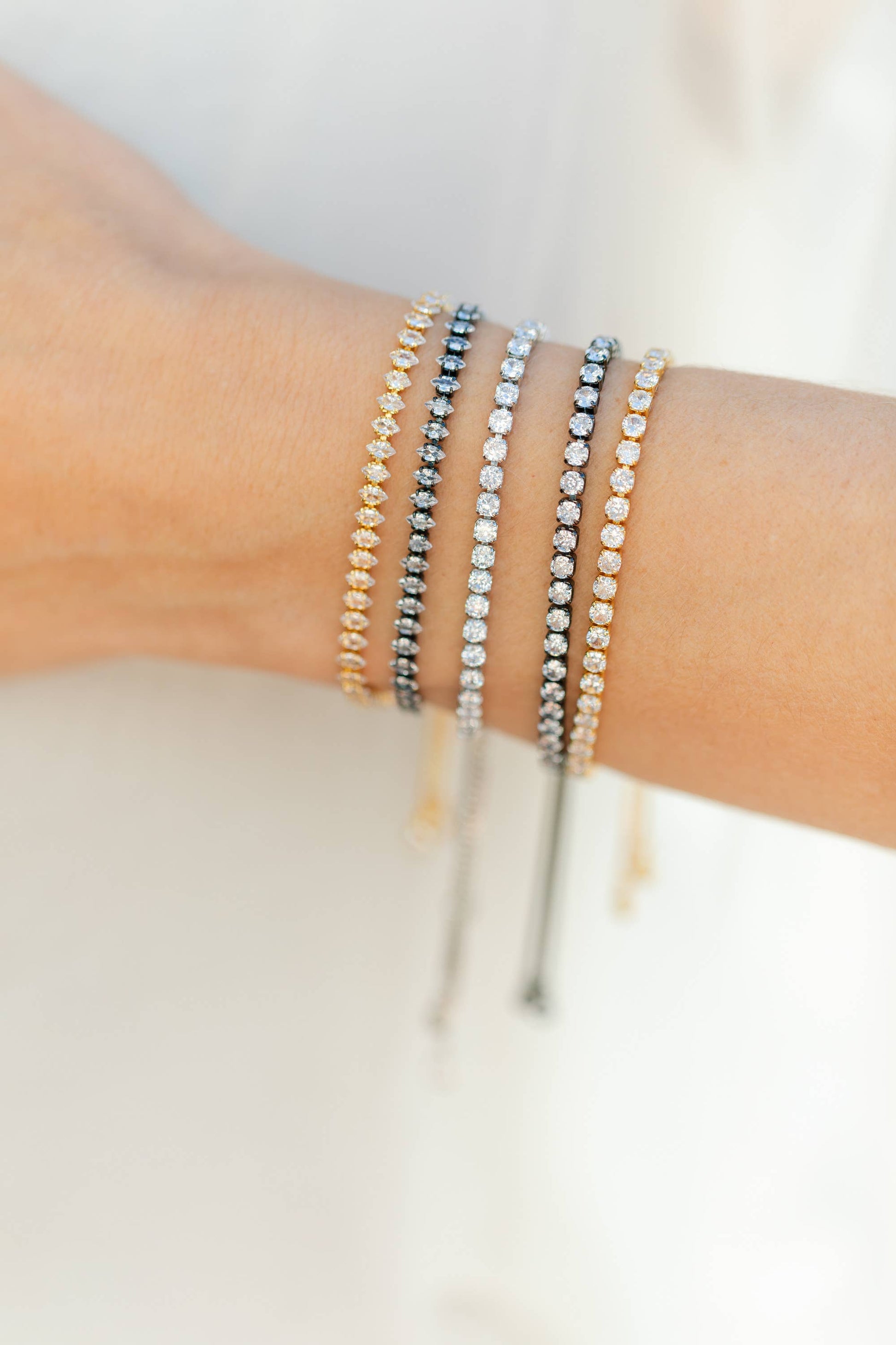This sparkly stunner will have you looking like a million bucks (even though it won't cost you anywhere near that much)! Adjustable diamond-shaped cubic zirconia tennis bracelet for when you wanna look fab.